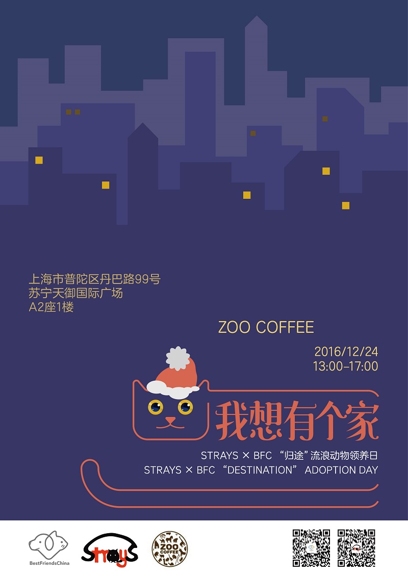 2016.12.24(Sat)13:00-17:00 Zoo Coffee @ Suning Tianyu Royal International Plaza Putuo DanBa Road #99 Black A2, Level 1 Subway Line 13 Zhenbei Road station, Exit 1.