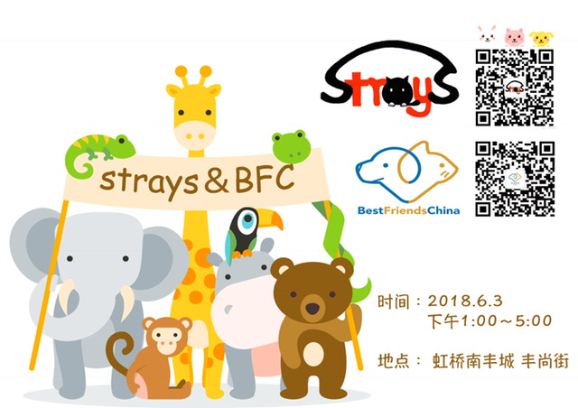 Hongqiao The Place is turning into a mini zoo in June, with nice weather comes all the summer fun with the animals. So BFC shall have an adoption event there with a student group Strays from Jiaotong High school. 时间:2018.6.3(Sun) 13:00-17:00 Location: The Place, Shanghai Changning district Junyi road 100.