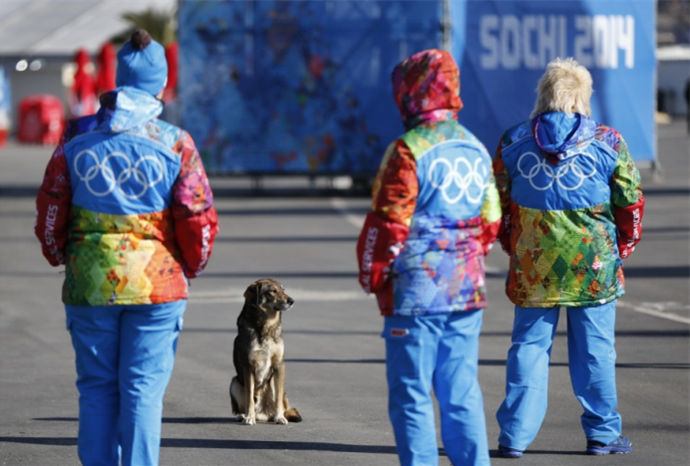 SOCHI, Russia - Thousands of stray dogs have been living amid the mud and rubble of Olympic construction sites, roaming the streets and snowy mountainsides, and begging for scraps of food.