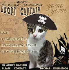 Captain, the funky kitty needs a FUREVER HOME/Shanghai