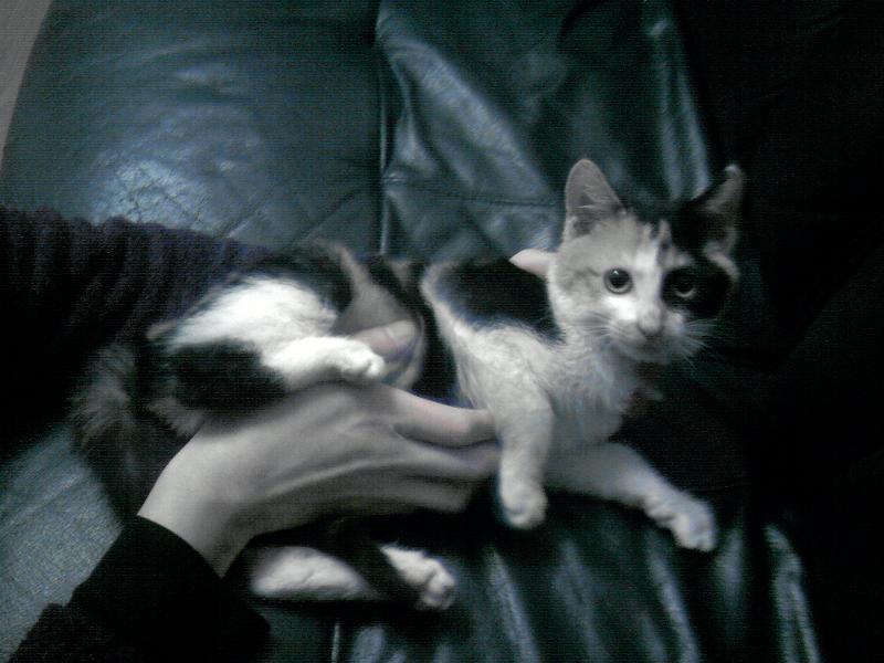 Three weeks ago I was walking around my neighborhood and, as I was about to cross a street, I saw a small cat trying to cross it in front of me. She almost got run over by a car, so I ran to her and grabbed her. It was a very cold night, so I took off my scarf and put it around her. She was shaking with cold and fear ,and the minute that is press her against me she started to purr and lick my neck. I took her home, fed her and she felt asleep on my lap, it was the cutest thing!